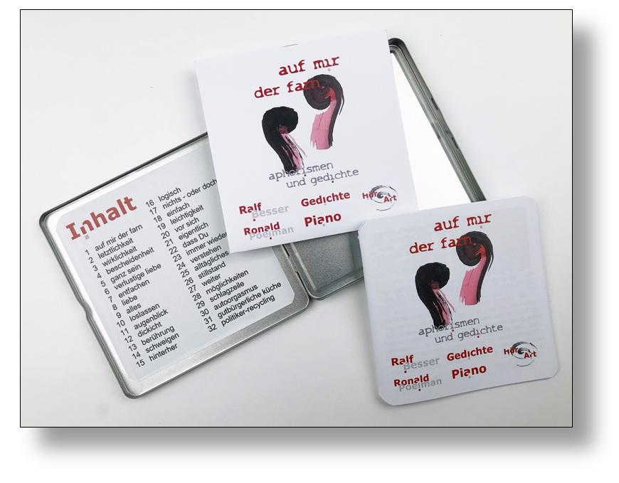 Mit Ronald Poelman habe ich einen Musiker gefunden, mit dem es einfach eine Freude war einige meiner Gedichte musikalisch einzufassen und nicht nur das. Seine Improvisationen stehen neben den Texten fast für sich. Er konnte sich so in die Ideen hineinversetzen, mitgehen, dass alle Aufnahmen in einem Setting - ohne Wiederholung eingespielt - wurden! Allein für dieses Erleben danke ich Ronald vom Herzen.
