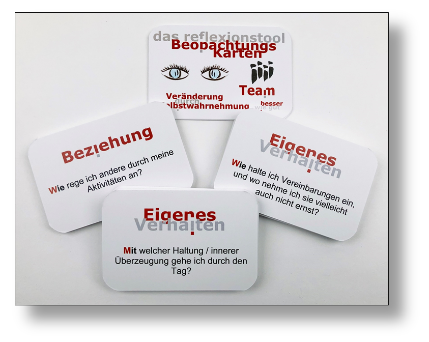 Optimaler Weise nimmt man diese Aufgabe mit einer KollegIn seines Vertrauens oder im Team wahr. Es gibt drei Möglichkeiten, welche Karte für den Tag bestimmend ist: Man lässt sich vom anderen eine auswählen, sucht sich selber eine aus oder lässt den Zufall entscheiden.