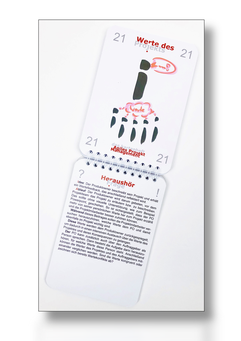 In diesem kartenheft /-box finden Sie von Dr. Oliver Grieble die grundsätzlichen Strukturen vom Agiles Projektmanagement beschrieben.