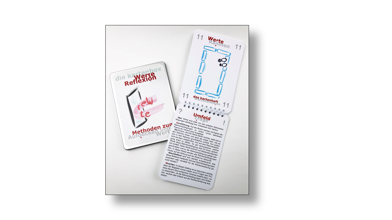 Diese Reflexion wäre ohne den Umweg des „WerteGrundrisses“ kaum möglich gewesen. Experimentieren Sie als Leser also mit den „ReflexionsRitualen“ und sammeln Sie Ihre eigenen Erfahrungen. Darauf kommt es an. Das kartenheft soll anregen und zum Ausprobieren einladen.